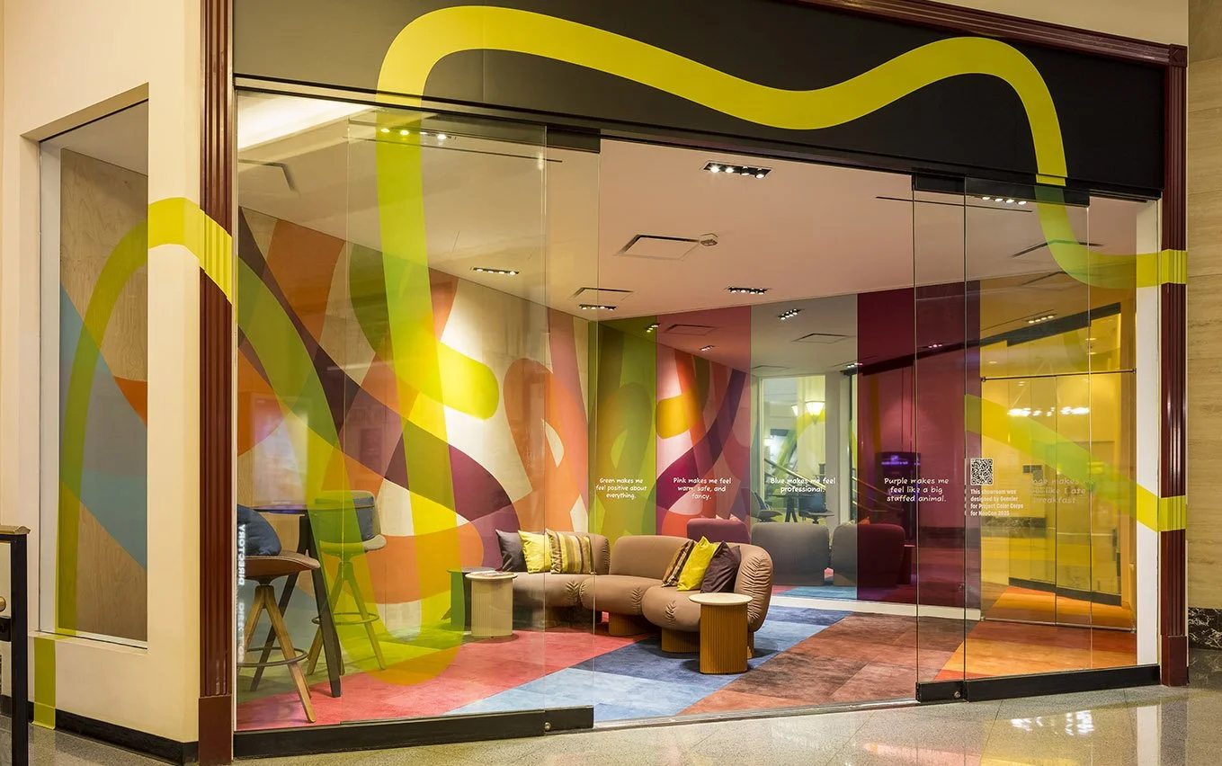 Gensler Chicago, our generous partners, designed ‘Design Creates Joy!’, a jewel-box pop-up that introduced Project Color Corps to 50,000 NeoCon 2025 attendees.
